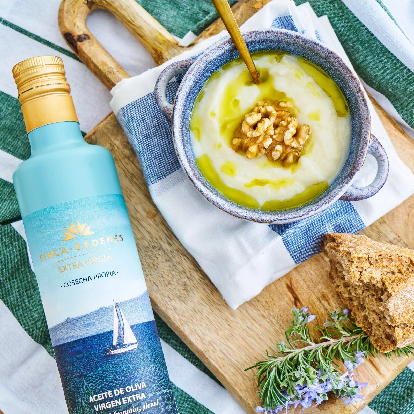 Este aove se produce con aceitunas seleccionadas a mediados de octubre de los olivos de la finca de Aires de Jaén "los badenes", las mejores aceitunas de cosecha temprana picual, frantoio y arbequina con las que se obtiene este aceite único, con personalidad propia y lleno de matices.