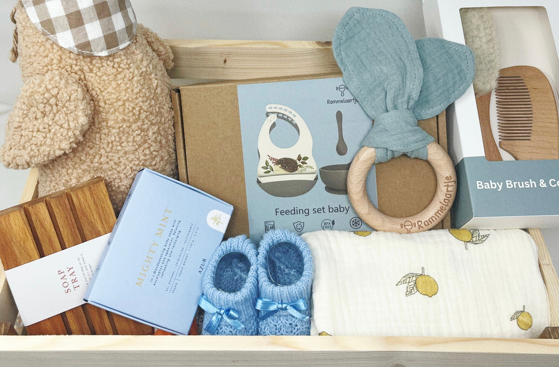Conoce nuestra caja prediseñada, ideal para regalar a una mamá que haya tenido un niño, o para tener un detalle con alguna amiga. Contiene: