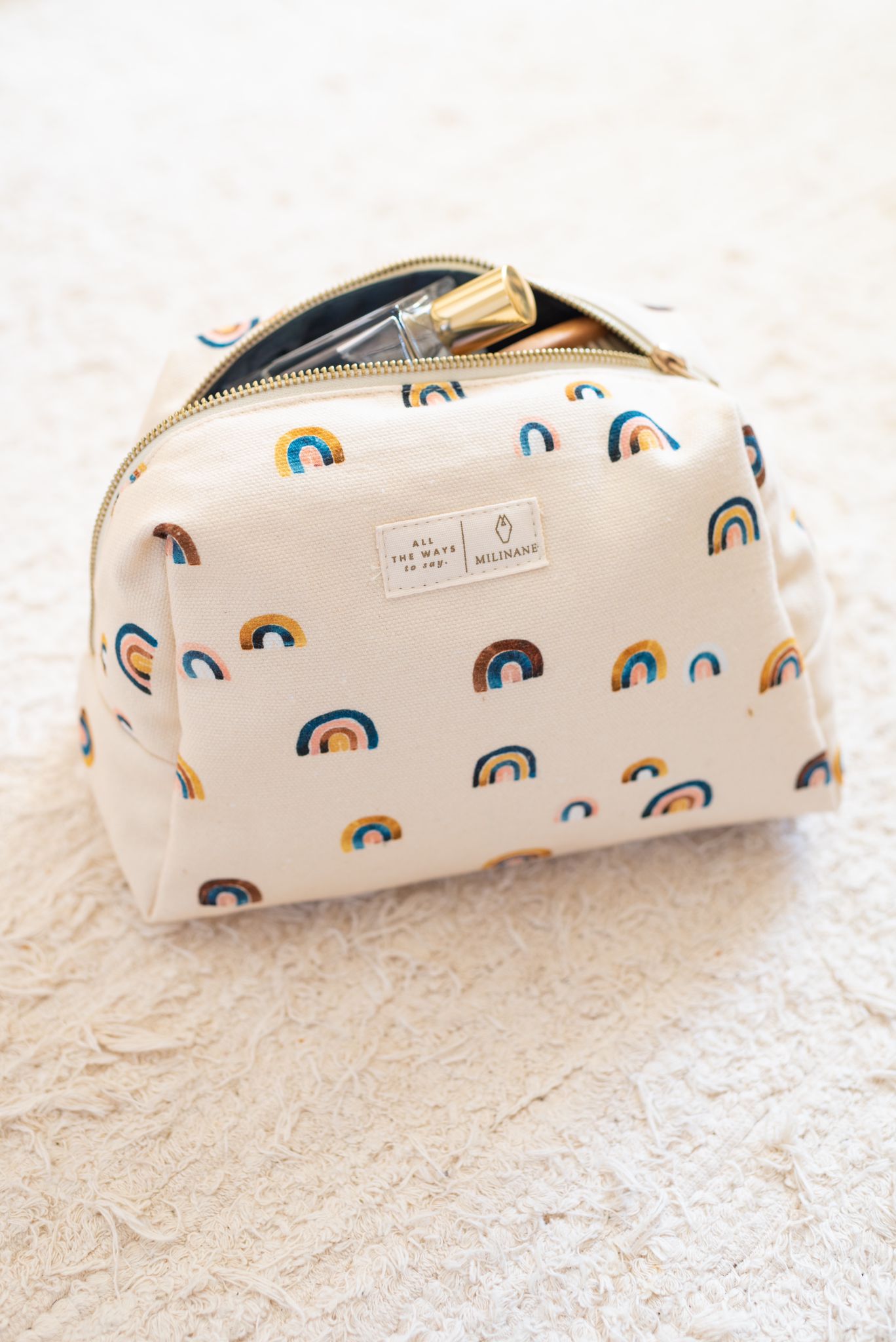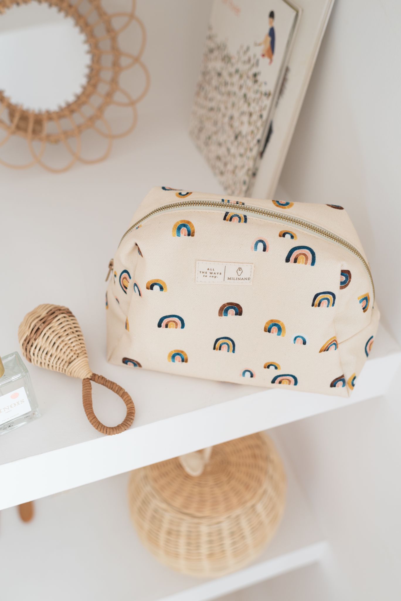 Compartimentos: abertura grande con cremallera dorada, bolsillo interior pequeño