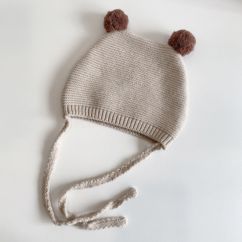 Gorro para bebés con pompones perfecto para la tamporada de invierno. Cuentan con dos pompones suaves y un cordón a cada lado que nos permite mantener el calor y que el gorrito no se caiga.