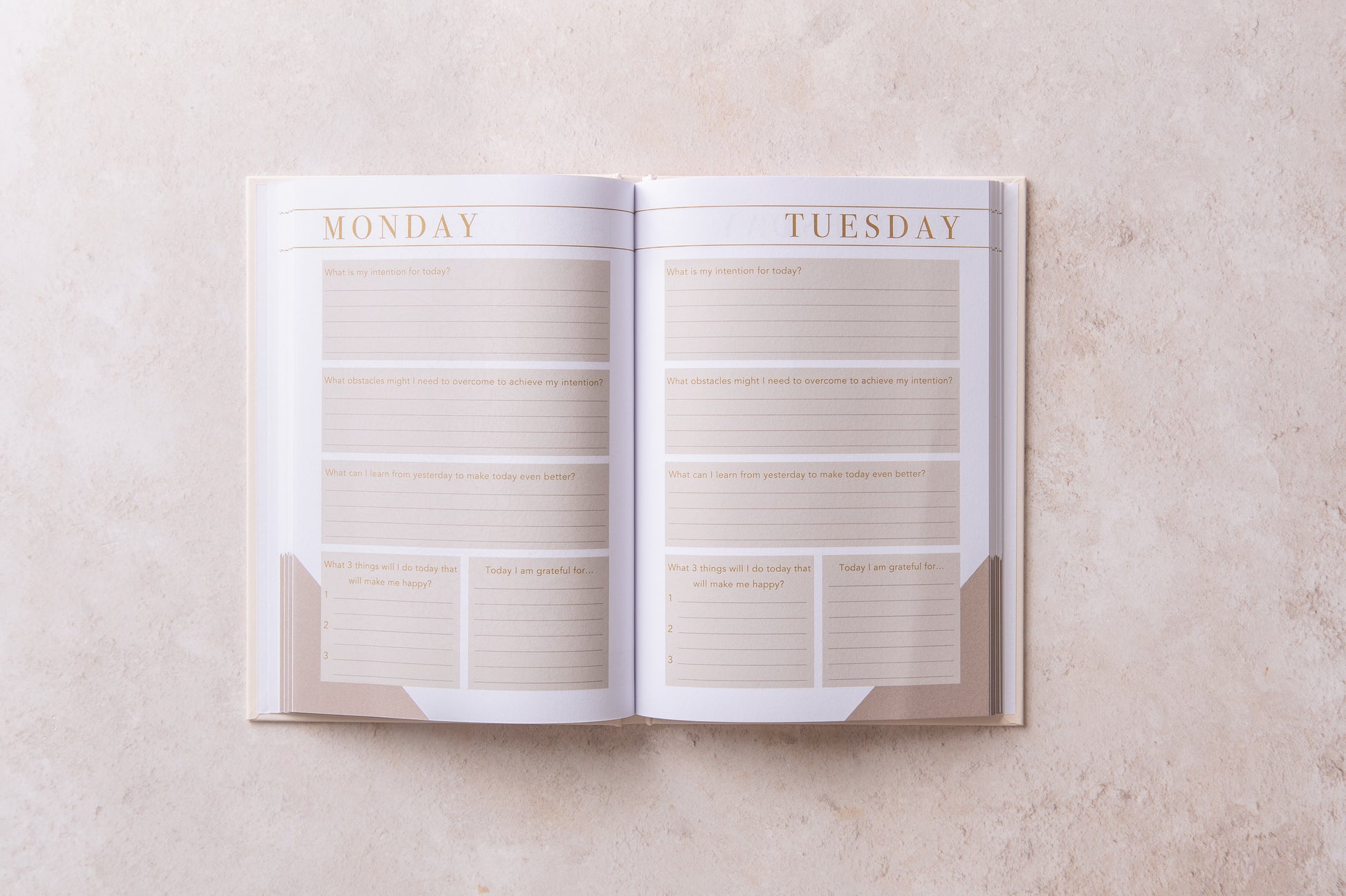 Este diario se ha diseñado específicamente para utilizarlo por las mañanas, para ayudarte a empezar cada día con una mentalidad positiva.