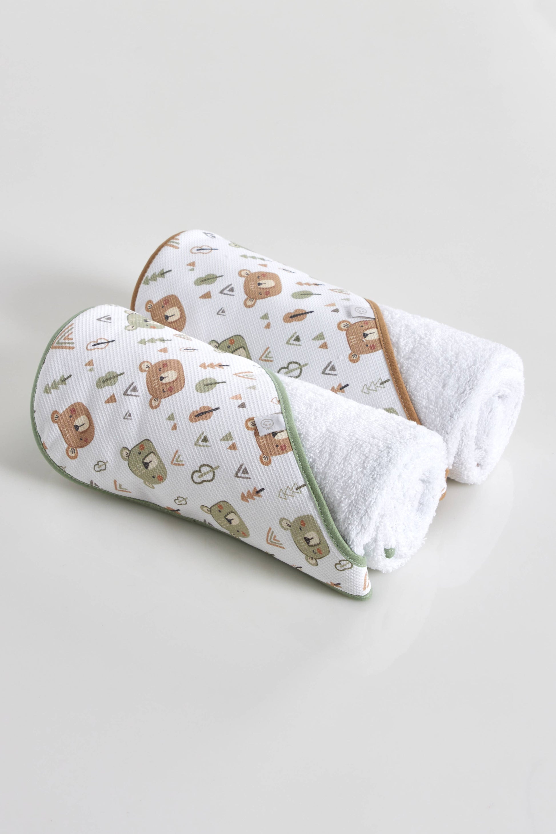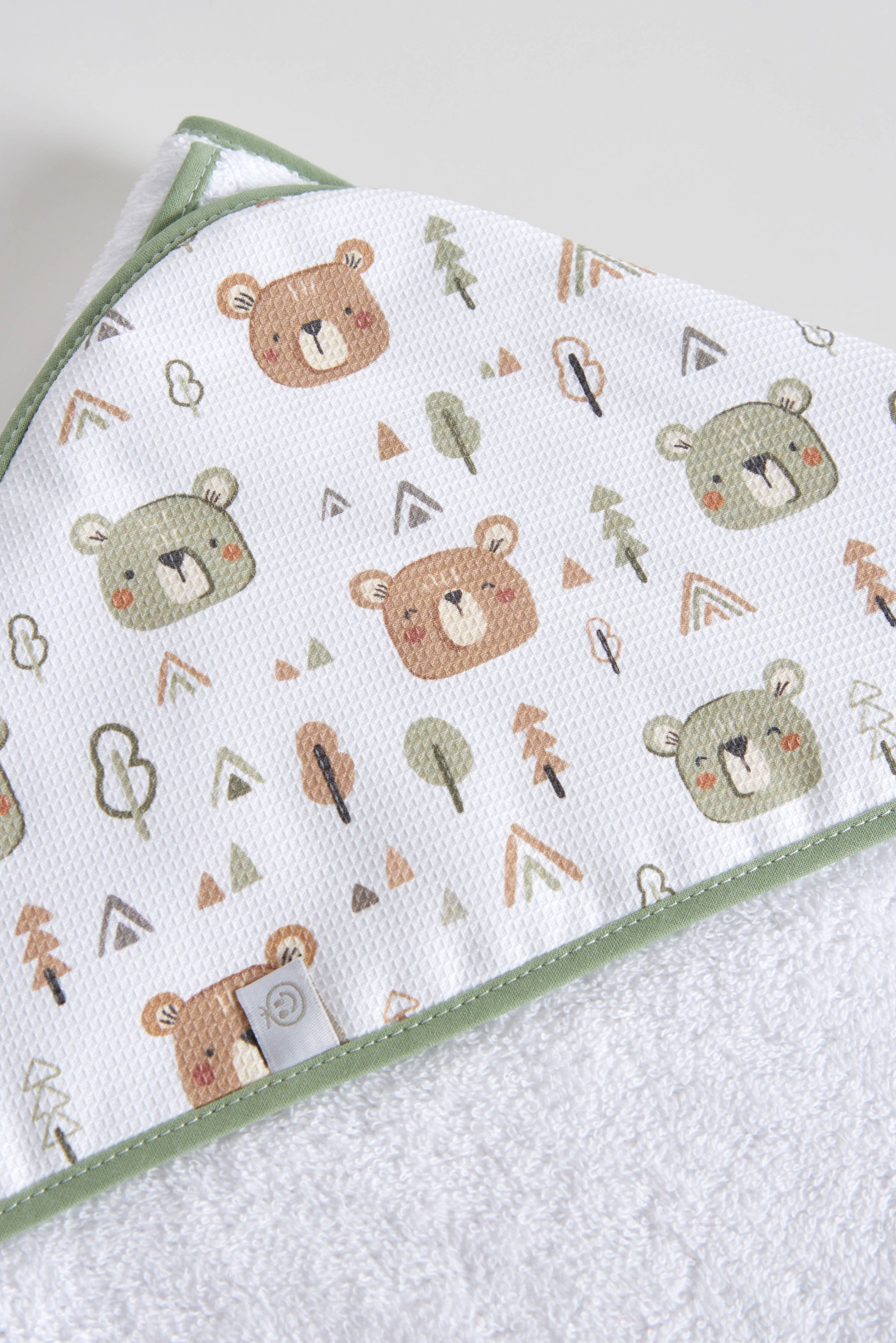 Toalla de baño de algodón con capucha estampada y rayas de colores, con el reborde en color verde