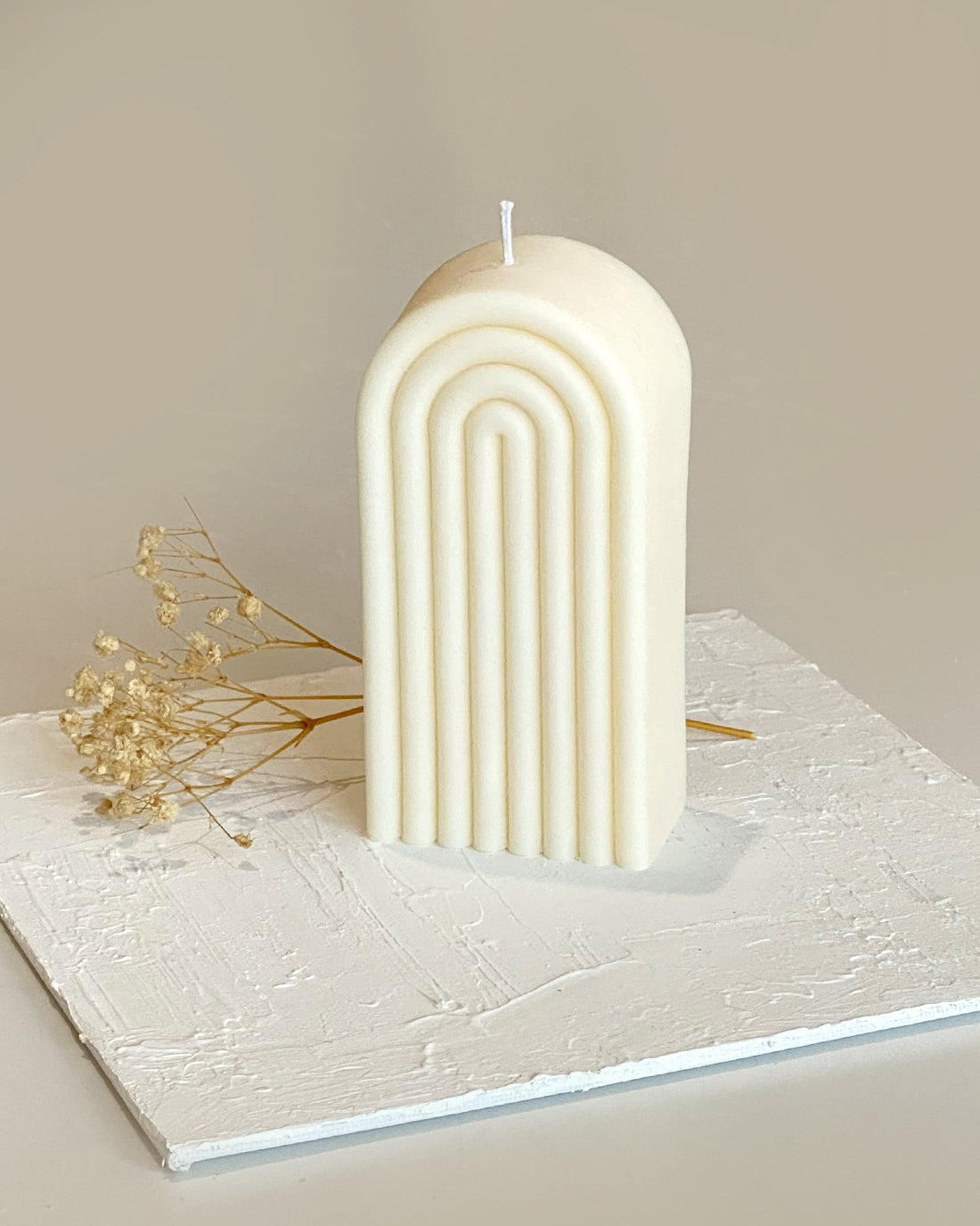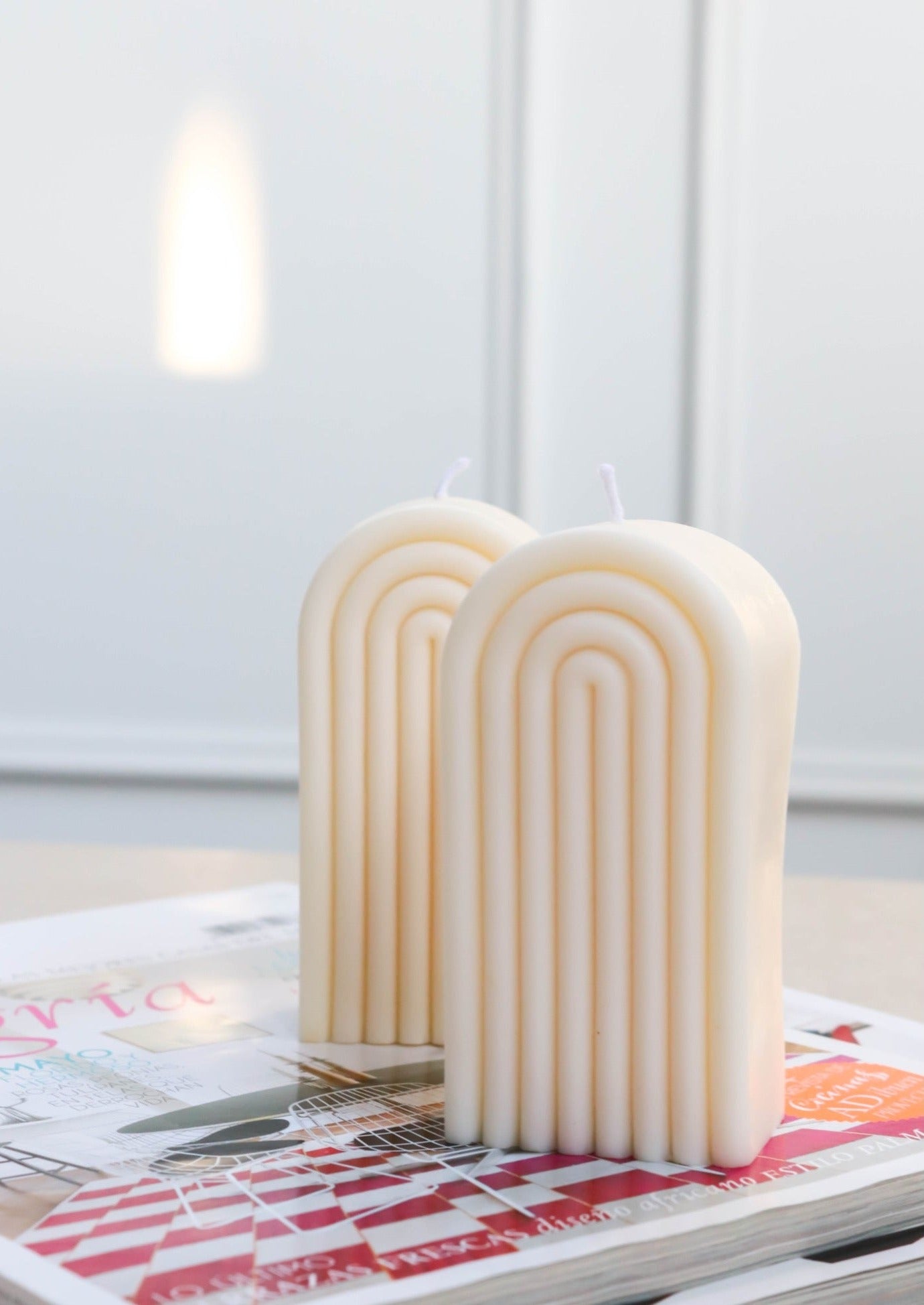 Vela de soja con una forma única de arcoíris. Elegante y minimalista, perfecta para decorar una mesa de centro, librería o el dormitorio.