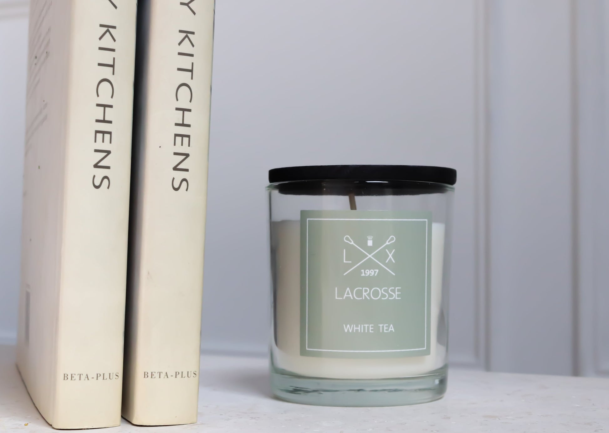 El vaso de cristal, la cera vegetal, la tapa de madera y la mecha: estas son las piezas que forman el continente y el contenido olfativo de las velas aromáticas de Lacrosse, a las que se une el perfume esencial, el protagonista en este conjunto excepcional.