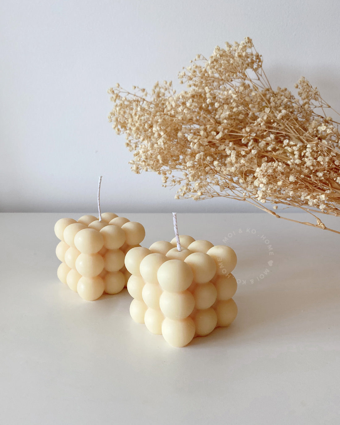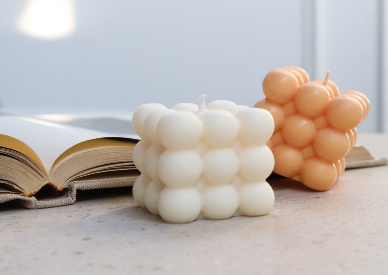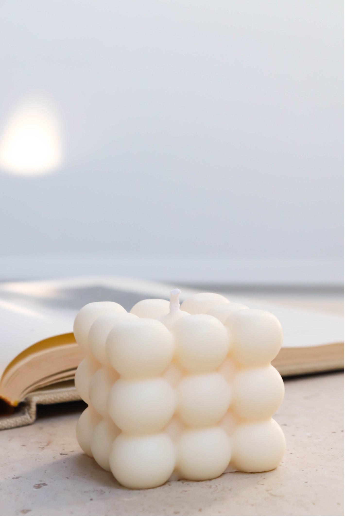Vela de burbujas hecha en España, 100% cera natural de soja ecológica.